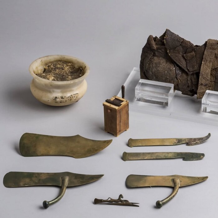 Великолепный бритвенный набор обнаружен в гробнице мастера Кха, жившего в середине XVIII династии, около 1400 года до нашей эры.