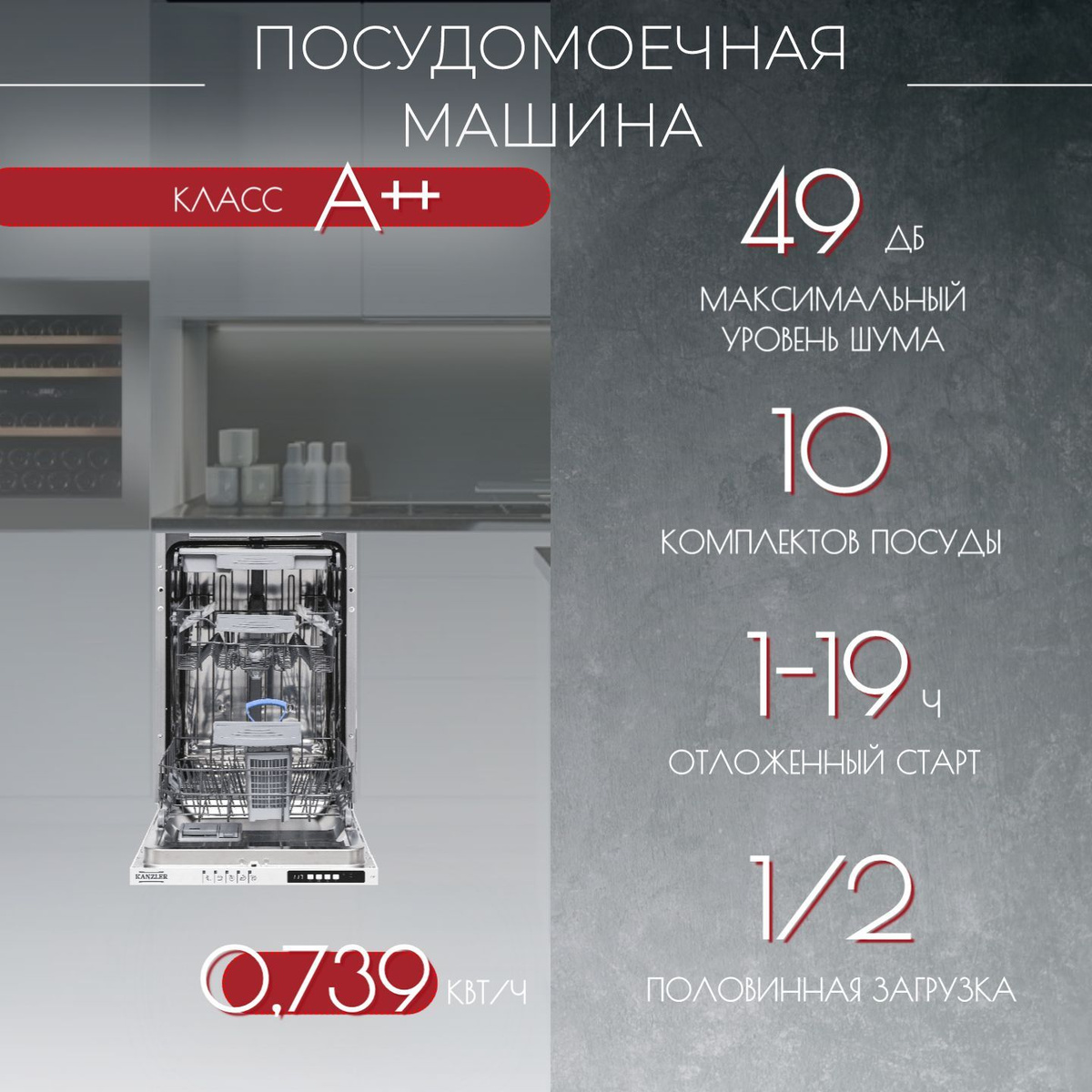 Средний показатель шума для современных моделей — 44-45 дБ (примерно как тихий разговор). Если кухня совмещена с гостиной или вы планируете ночные запуски, важна тихая работа. Современный минимум — около 38 дБ (почти неслышно). Уровень выше 50 дБ уже может вызывать дискомфорт.