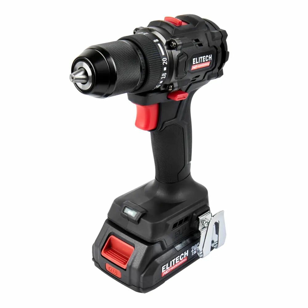 Многофункциональный инструмент для сверления (до 13 мм в металле/дереве и кирпичной кладке) и работы с крепежом. Оснащен двухскоростной металлической редукторной коробкой с плавной регулировкой оборотов (0-450 и 0-2000 об/мин). Максимальный крутящий момент для закручивания — 62 Н·м, регулируется кольцом с 21 позицией. Поставляется в кейсе с двумя аккумуляторами и зарядным устройством. Вес с батареей — 1.79 кг.