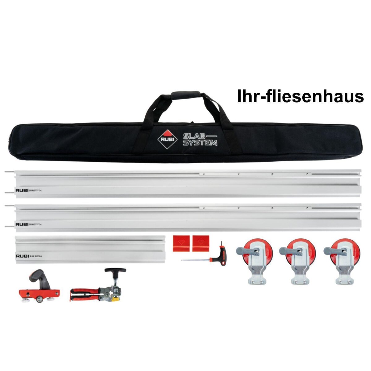 Одной из ключевых новинок стала модернизированная версия уже известной системы Slim Cutter. Эта система теперь способна резать плиты длиной до 300 см и толщиной от 3 до 8 мм. Ее конструкция включает три алюминиевых направляющих, которые можно соединять между собой в зависимости от требуемой длины, формируя длинную и жесткую шину. По этой шине плавно и точно перемещается каретка с режущим роликом, причем соединения направляющих не создают сопротивления движению. Крепление системы к поверхности плиты осуществляется быстро и надежно с помощью двух лап, оснащенных резиновыми присосками.